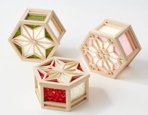 伝統技術の組子細工と京から紙、現代の技術の乾電池式LEDを組み合わせた光箱