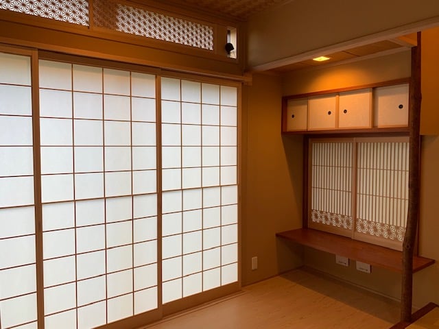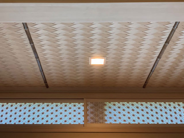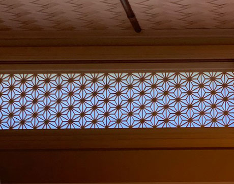 総麻の葉の欄間と雪見障子と角麻入りの書院を入れさせていただきました