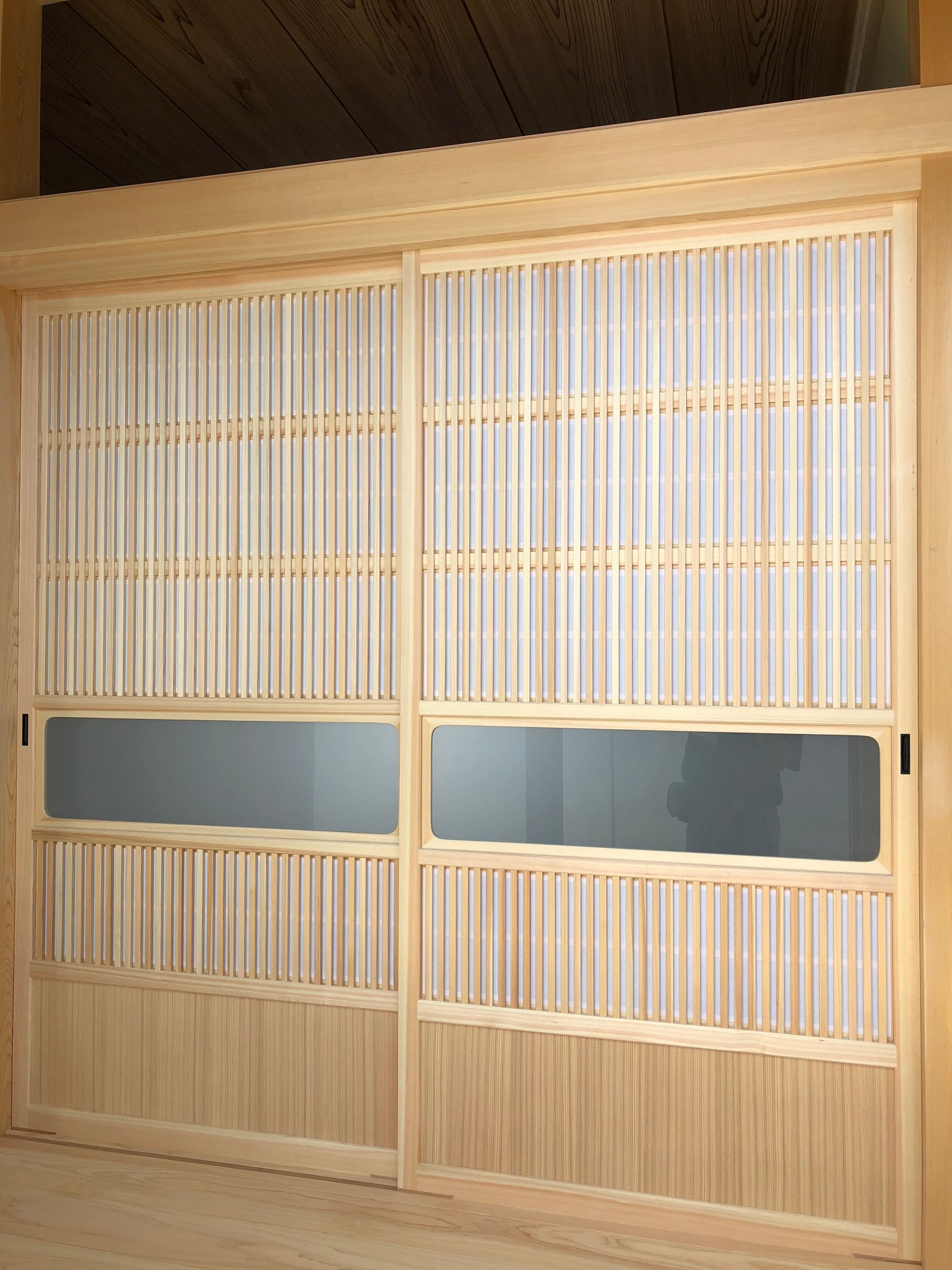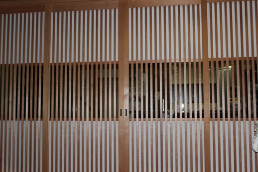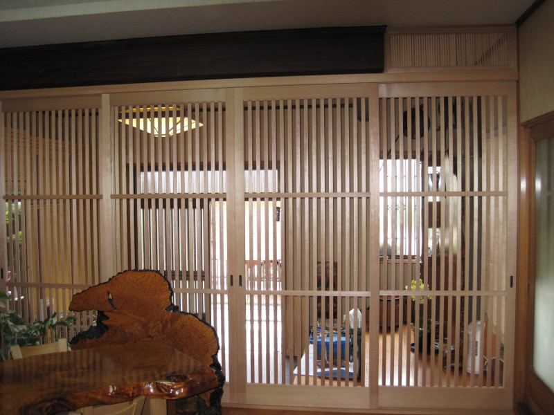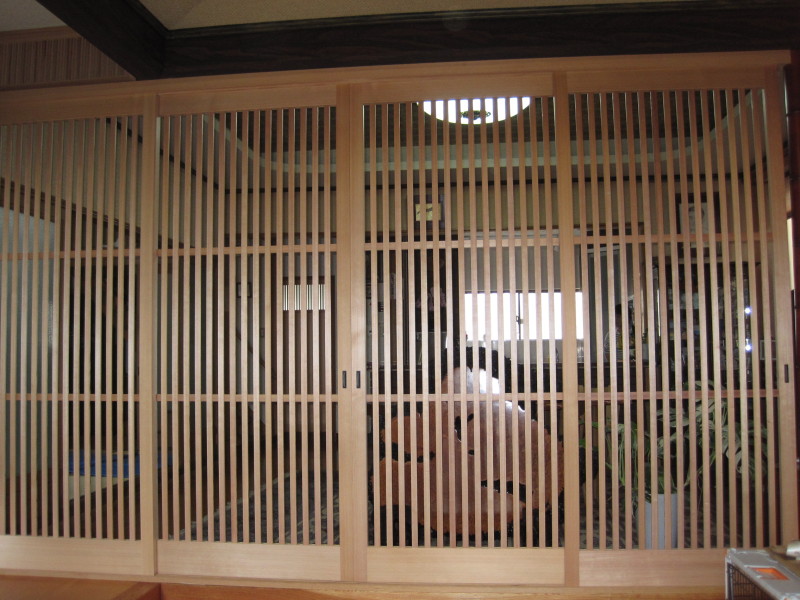 横を粗く区切った裏の部分に入る小障子です 出来上がった大阪格子戸を表から見た様子です