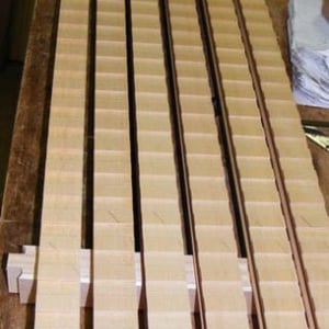 米桧を使用して製作しました。 ほぞ穴が沢山掘られた中桟です